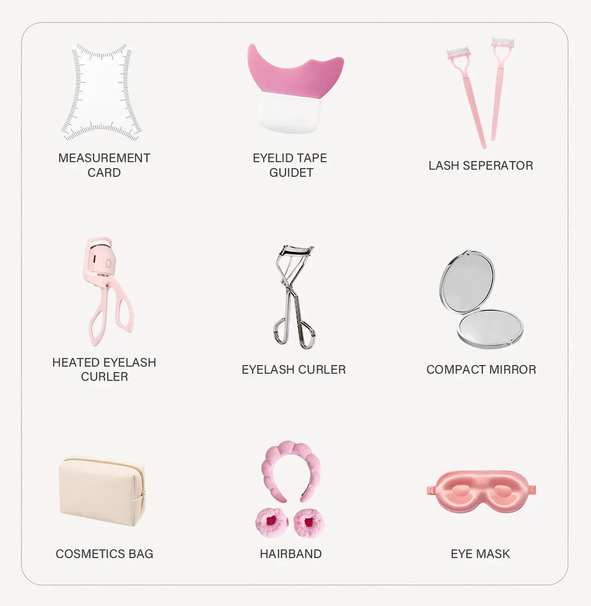 To complement the packaging, we also offer essential accessories such as lash brushes, mirrors, measurement cards to track lash growth, and user guide inserts that provide customers with clear usage instructions.